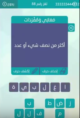 دهشة Daahsha جواب لغز اكثر من نصف شيء او عدد رقم 88 من لعبة وصلة للمجموعة العاشرة