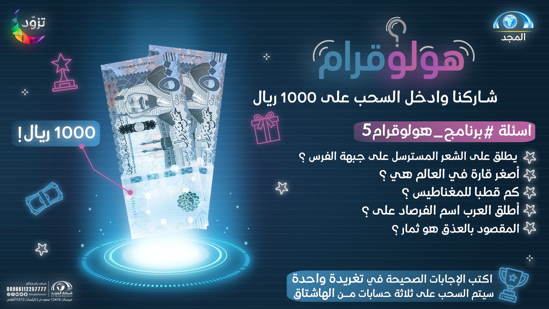 شبكة المجد على تويتر انتهت منافسة برنامج هولوقرام5 الالكترونية مع خالد أبو محفوظ Mh Kaled واللي ما حالفه الحظ هنا عندكم فرصة بالاجابة على كل الاسئلة عبر هاشتاق البرنامج